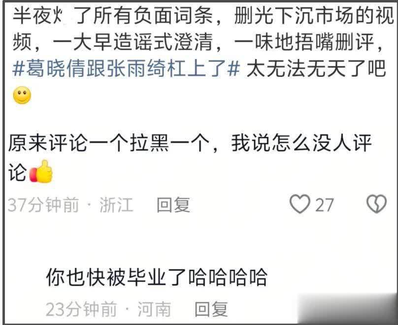 面对张雨绮热搜澄清,葛晓倩直接来了一句“对方没有发过的东西,都能够上词条,就是很奇怪的”。