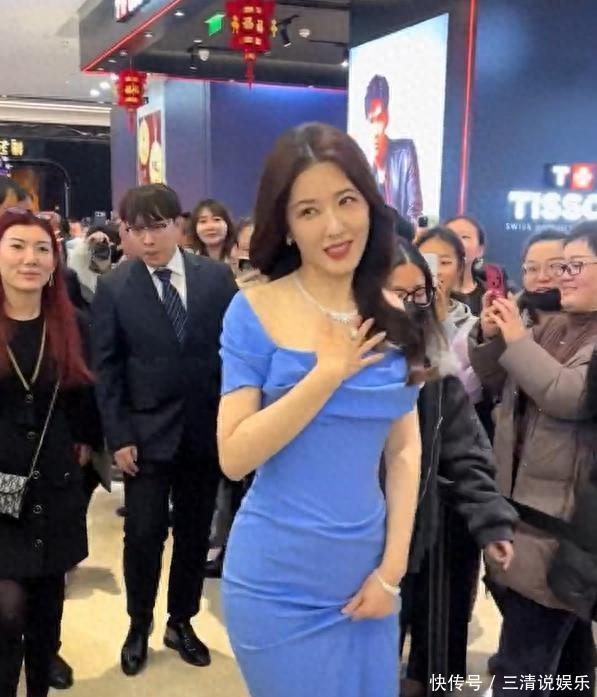 与多数选用亮色或复杂印花夺人眼球的女星不同,曾黎这套低饱和蓝更像用温柔的光晕包裹肌肤,恰好与晕染的灯光相映成趣。尤其是一字肩可拆设计,将礼服变换成两种气韵——端庄抑或小性感,只调整一个细节。现场视频更还原她的状态,言谈间毫无刻意扮嫩的举止,也没生搬硬造的少女感。连签名动作都自然谦恭,笑意浮现而非表情管理的痕迹。通透松弛的举止,比精修照片更具冲击。遗憾的是,生图依旧记录岁月:鱼尾纹、微微浮肿的苹果肌,却没有减损整体的美。49岁的曾黎,在同龄女星中,始终保持几分领先。